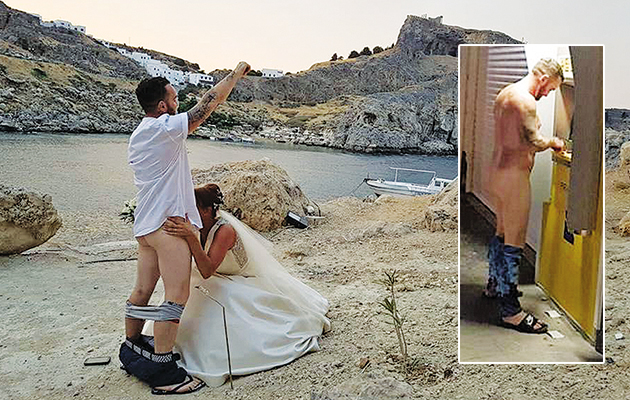 Η κίνησή τους να προσποιηθούν σεξουαλική πράξη για ένα φωτογραφικό ενσταντανέ αμέσως μετά τον γάμο τους στον περίβολο του ξωκλησιού θεωρήθηκε ασέβεια και οδήγησε τον μητροπολίτη Ρόδου κ. Κύριλλο να ανακοινώσει την απαγόρευση γάμων αλλοδαπών. Το γεγονός προκάλεσε αντιδράσεις από άλλα ζευγάρια που έχουν προγραμματίσει τους γάμους τους στη Ρόδο το 2018 και έχουν έρθει σε αδιέξοδο. Απαντώντας στις αντιδράσεις το ζεύγος Λαν, αν και αρχικά έδειξε μια κάποια μεταμέλεια, χαρακτήρισε την απαγόρευση… ακραία, σπεύδοντας να αναρτήσει άλλο ένα προκλητικό ενσταντανέ. Στη φωτογραφία απεικονίζεται ο 27χρονος Μάθιου γυμνός μπροστά από ένα μηχάνημα ΑΤΜ.
