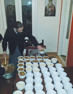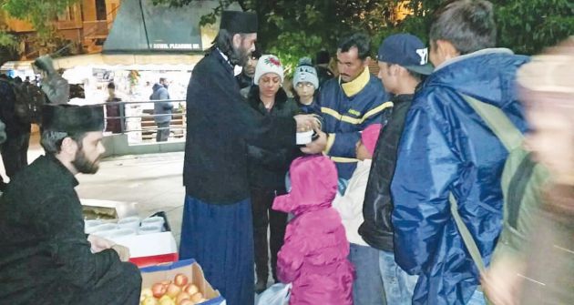Στη συνέχεια της συζήτησής μας αναφέρεται στα γεύματα αγάπης, τα οποία, όπως ισχυρίζεται, γίνονται πραγματικότητα χάρη στη βοήθεια των εθελοντών. «Στηρίζονται εξ ολοκλήρου στις μεμονωμένες προσφορές του κόσμου και οργανώνονται από εμάς που καθημερινά ερχόμαστε σε επαφή με λαϊκές αγορές, σούπερ μάρκετ και καταστήματα προκειμένου να προμηθευτούμε τις πρώτες ύλες. Ολα τα φαγητά τα μαγειρεύω εγώ με τη βοήθεια των κληρικών της συνοδείας μου -περίπου 20 άτομα- αλλά και εθελοντών, κυρίως νέων, οι οποίοι στηρίζουν το έργο. Και δεν μιλάμε μόνο για τον απλό κόσμο που δίνει το “παρών” σε αυτήν την προσπάθεια, αλλά και για αρκετούς επωνύμους, οι οποίοι προτιμούν να βοηθούν διακριτικά» εξηγεί και ξεκαθαρίζει: