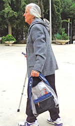 Στην αναμονή για το προσκύνημα στην Αγία Ζώνη βρέθηκε και μια γυναίκα που περπατούσε με δυσκολία και υποβοηθούμενη με πατερίτσες.