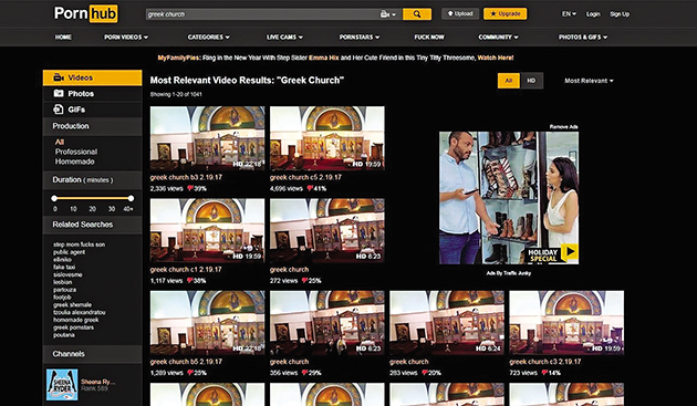 Εως τώρα η Ελληνορθόδοξη Εκκλησία δεν περιλαμβανόταν στα «γούστα» των θεατών, όμως η πολύ γνωστή ιστοσελίδα Pornhub, που φιλοξενεί εκατομμύρια βίντεο πορνό, αποφάσισε να απλώσει τα «δίχτυα» της και σε αυτήν.