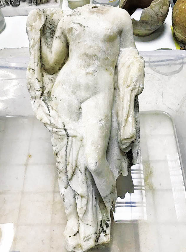 ❱❱ Ενα εντυπωσιακό εύρημα είδε το φως του ήλιου λόγω των εργασιών που γίνονται για το μετρό στη Θεσσαλονίκη. Πρόκειται για ένα αγαλματίδιο ύψους μόλις 20 εκατοστών χωρίς κεφάλι (φωτό), το οποίο φέρεται ότι αναπαριστά τη θεά Αφροδίτη. Γι’ αυτό ο πρόεδρος της Αττικό Μετρό Γιάννης Μυλόπουλος το αποκάλεσε «η Αφροδίτη του μετρό Θεσσαλονίκης» στην ανάρτηση που έκανε με τη σχετική φωτογραφία.