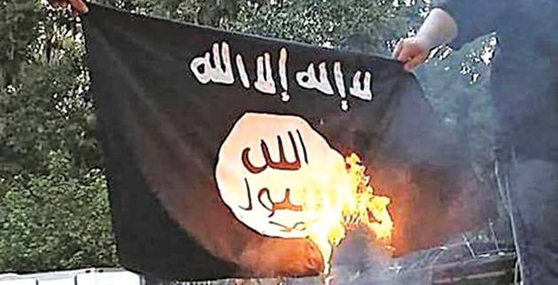 Μάλιστα, έκαψαν σημαίες του Ισλαμικού Κράτους που βρήκαν μέσα στους χώρους του και απαθανάτισαν τις σκηνές με τα κινητά τους.