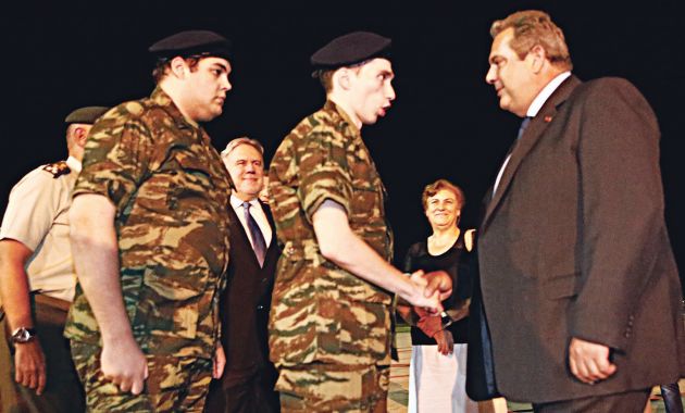 Οι δύο Ελληνες, που είχαν συλληφθεί στις 2 Μαρτίου σε απαγορευμένη στρατιωτική περιοχή στις Καστανιές του Εβρου και έκτοτε κρατούνταν στις φυλακές Αδριανούπολης, αποβιβάστηκαν φορώντας στολές εκστρατείας και χαιρέτισαν το άγημα της Στρατονομίας που είχε παραταχθεί για να τους αποδώσει τιμές. Στη συνέχεια παρουσιάστηκαν ενώπιον του υπουργού Εθνικής Αμυνας Πάνου Καμμένου και του αρχηγού ΓΕΣ Αλκιβιάδη Στεφανή, πριν παραδοθούν στις αγκαλιές των γονιών τους, που είχαν φτάσει από νωρίς στο αεροδρόμιο και τους περίμεναν με αγωνία.