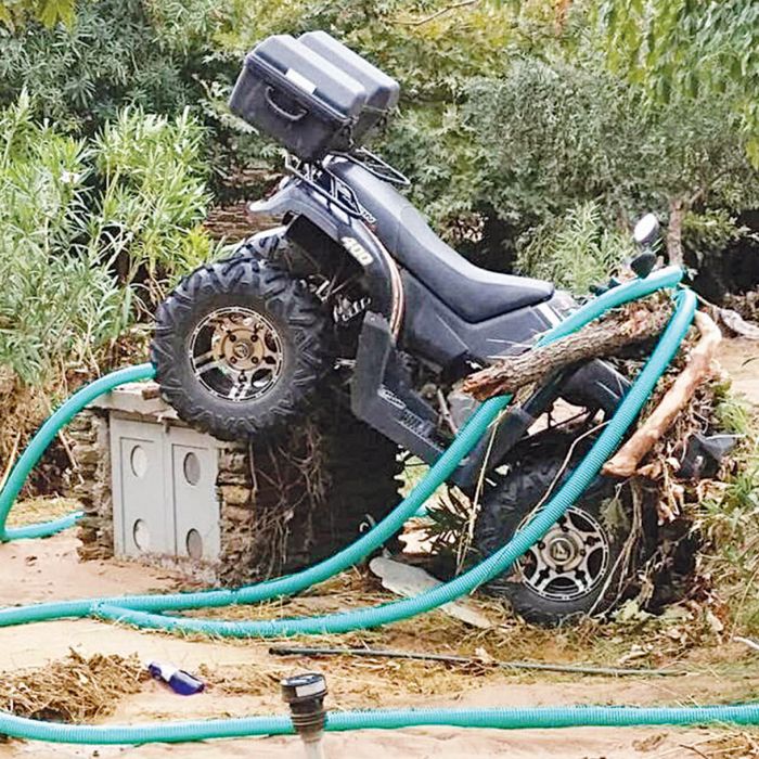 Η μηχανή βρέθηκε «σκαρφαλωμένη» πάνω σε γεώτρηση, ενώ στην παιδική χαρά σφήνωσε ξύλινο σπιτάκι. «Ήξερα τι γινόταν στην Άνδρο. Μιλούσα με ανθρώπους χθες βράδυ και μου έλεγαν “τέτοιο πράγμα δεν το έχουμε ξαναδεί”, φούσκωσαν τα ποτάμια, βγήκαν νερά από παντού, πλημμύρισαν πολύ άσχημα, που στην Άνδρο δεν έχουμε πολύ εύκολα βροχή. Δηλαδή μετά τον Μάιο φανταστείτε δεν βλέπουμε σταγόνα…» αποκάλυψε on air στην εκπομπή της η ωραία Ελένη, χωρίς όμως να αποκαλύψει τα προβλήματα που προκλήθηκαν στην επιχείρησή τους.