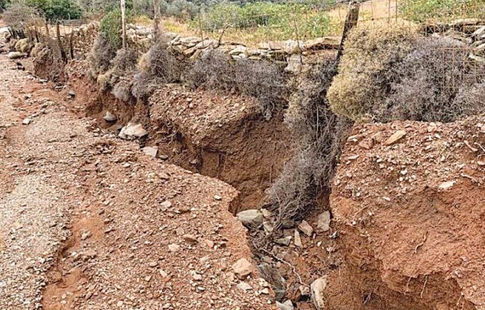 H σφοδρή νεροποντή που έπληξε το νησί την περασμένη Δευτέρα προκάλεσε καταστροφές στα αυτόνομα παραδοσιακά σπίτια τού «Οναρ», με τους φουσκωμένους χειμάρρους να ρημάζουν τους υπαίθριους χώρους, το μποστάνι, το εξωτερικό μπαρ και το εστιατόριο, παρασύροντας φερτά υλικά, πάγκους, ψυγεία, τραπέζια, γλάστρες, ξύλα, ακόμα και τη «γουρούνα» με την οποία η γνωστή παρουσιάστρια «όργωσε» το περασμένο καλοκαίρι το νησί μαζί με τον άντρα της.