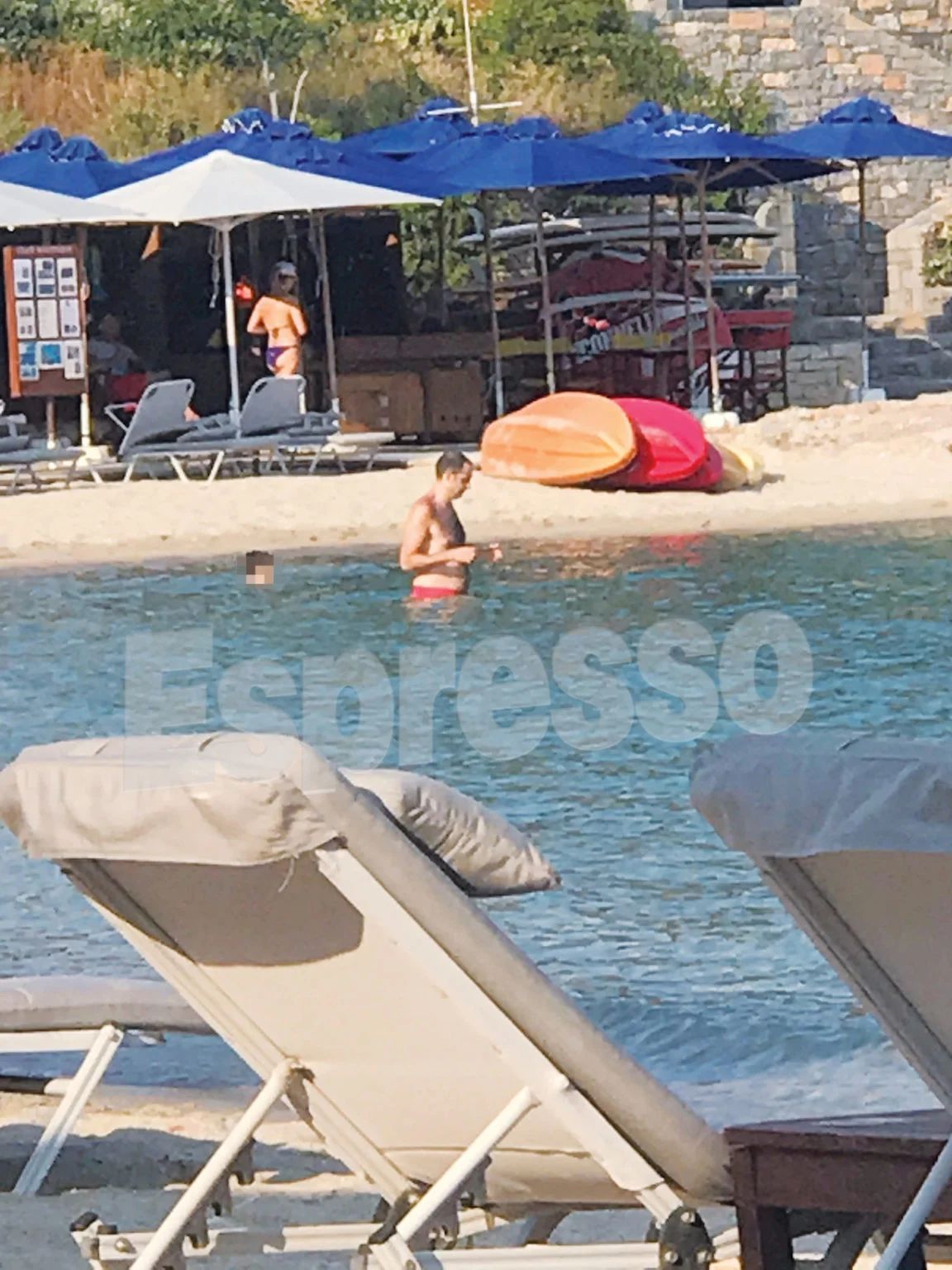 Ο ισχυρός άνδρας του Μαξίμου, φορώντας κόκκινο μαγιό, έκανε τις βουτιές του και έπαιξε στη θάλασσα με το φουσκωτό, παρέα με το παιδί του, φορώντας και οι δύο σωσίβιο και τηρώντας, όπως έπρεπε, τους κανόνες ασφαλείας. Καθ’ όλη τη διάρκεια της παραμονής του στην πλαζ ο ανιψιός του πρωθυπουργού ήταν ιδιαίτερα στοργικός και δεν άφηνε λεπτό από τα μάτια του το παιδί του.