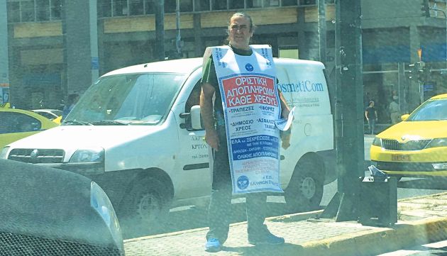 «Ελα να ξεχρεώσεις κι εσύ με την εξώδικη δήλωση-εντολή ολικής αποπληρωμής» έγραφε η… μπροστοποδιά (που έλεγε κι η γιαγιά μου) που φορούσε ένα από τα «ορφανά του Σώρρα» χθες το πρωί στους Αμπελοκήπους. Επί της Κηφισίας, καμιά δεκαριά γυναίκες και άνδρες σταματούσαν τα αυτοκίνητα στα φανάρια και μοίραζαν προκηρύξεις υπέρ της κίνησης Ελλήνων Συνέλευσις του Αρτέμη Σώρρα. Η προτίμησή τους ήταν στο φανάρι Κηφισίας και Αλεξάνδρας. Ποιος ξέρει, ίσως έχουν εσωτερική, δική τους πληροφόρηση ότι από εκεί διέρχονται τα περισσότερα UFO της Αττικής.