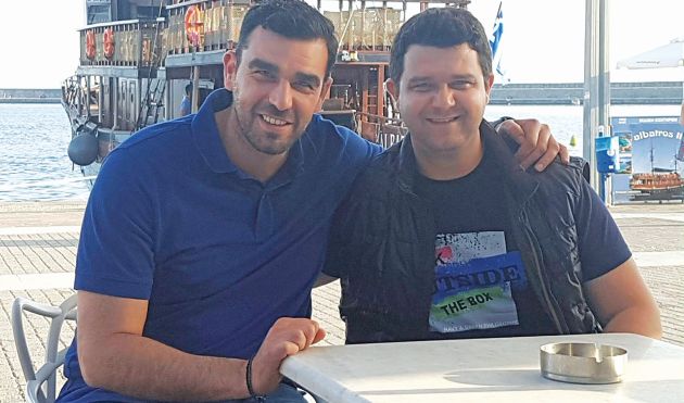 Να τα τα συριζάκια μου! Οι δύο «νεοσσοί» του κυβερνώντος κόμματος, Πέτρος Κωνσταντινέας (αριστερά) από τη Μεσσηνία και Μάριος Κάτσης (δεξιά) από τη Θεσπρωτία, συναντήθηκαν στην πατρίδα του πρώτου, την Καλαμάτα, και τα είπαν λιγάκι.