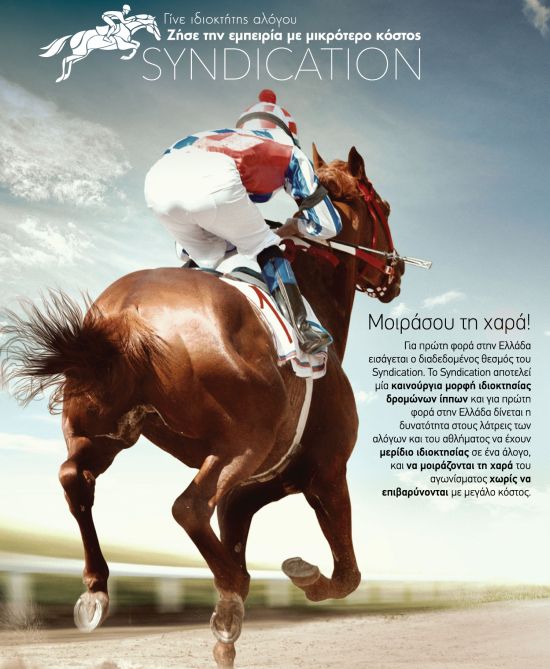 Το syndication αποτελεί μία καινούργια μορφή ιδιοκτησίας ίππων βάσει της οποίας δίνεται η δυνατότητα στους λάτρεις του σπορ να έχουν μερίδιο ιδιοκτησίας σε ένα άλογο μοιραζόμενοι το συνολικό κόστος με έως και 10 άτομα. To πρώτο αυτού τους είδους «συνδικάτο» στην Ελλάδα είναι το Champagne Syndication, που αποτελείται από δέκα γυναίκες, οι οποίες αγαπούν τις ιπποδρομίες και ήθελαν να ζήσουν την αγωνιστική εμπειρία. O ίππος Poetic Guest αποζημίωσε και με το παραπάνω την επιλογή τους, πετυχαίνοντας μεγάλη νίκη στην παρθενική του εμφάνιση στον ιππόδρομο. Στην επιτυχία του συνέβαλε ακόμη μια γυναίκα, η προπονήτριά του, κάνοντας ουσιαστικά το πρώτο syndication στην Ελλάδα …γυναικεία υπόθεση.