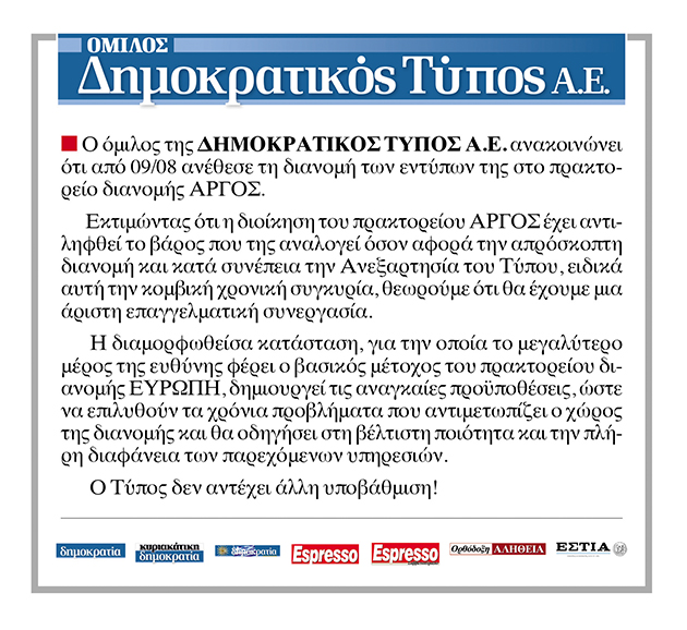 Είναι προφανές ότι τόσο η ανυπαρξία ιδιοκτήτη και κυρίου μετόχου στο πρακτορείο όσο και η κακή διαχείριση από την πλευρά της διοίκησης δημιούργησαν ανασφάλεια στο δίκτυο υποπρακτόρων και εφημεριδοπωλών. Αυτό είχε ως αποτέλεσμα την περαιτέρω αδυναμία του πρακτορείου από άποψη ρευστότητας και τη μη καταβολή εισπραχθέντων ποσών προς τους εκδότες, οι οποίοι μπροστά στον κίνδυνο της κατάρρευσης αποφάσισαν εντός της τρέχουσας εβδομάδας να μετακινηθούν στο άλλο Πρακτορείο Διανομής Τύπου, το «Αργος». Σημαντικό ρόλο διαδραμάτισε και το γεγονός ότι ο διευθύνων σύμβουλος του πρακτορείου Νίκος Παπαδόπουλος παραιτήθηκε τη Δευτέρα, με αποτέλεσμα το πρακτορείο να μείνει ακέφαλο και διοικητικά.