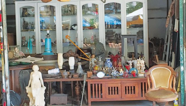 Ολοι εδώ νοσταλγούν τις εποχές που τα πλήθη των επισκεπτών δεν αρκούνταν σε μια ματιά και αγόραζαν παλιά αλλά εγνωσμένης αξίας αντικείμενα, που τους «ταξίδευαν» σε άλλες γενιές, τις γενιές των παππούδων τους. Τα χιλιάδες παλιά αντικείμενα στα μαγαζιά σε φέρνουν μπροστά σε μια άλλη εποχή. Φωτιστικά της δεκαετίας του 1960, κρύσταλλα, δίσκοι βινιλίου των 45 και των 78 στροφών, παλιά γραμμόφωνα, μεταλλικά κουτιά από θρυλικές βιομηχανίες της Ελλάδας του χθες, κιτρινισμένες αφίσες, ξεκούρδιστα βιολιά, σκονισμένοι πίνακες, ένδοξες δραχμές, τζουκ μποξ και μηχανές κινηματογράφου είναι ορισμένα από τα αντικείμενα που συναντά κάποιος στον χώρο όπου ο χρόνος δείχνει να έχει σταματήσει.